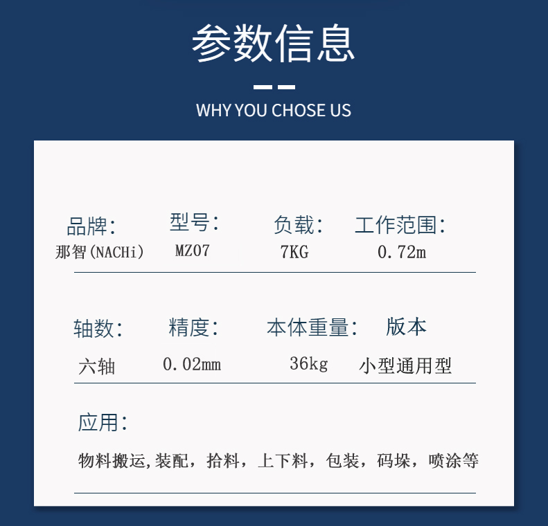 二手NACHi那智不二越MZ07小型六軸通用型工業機器人